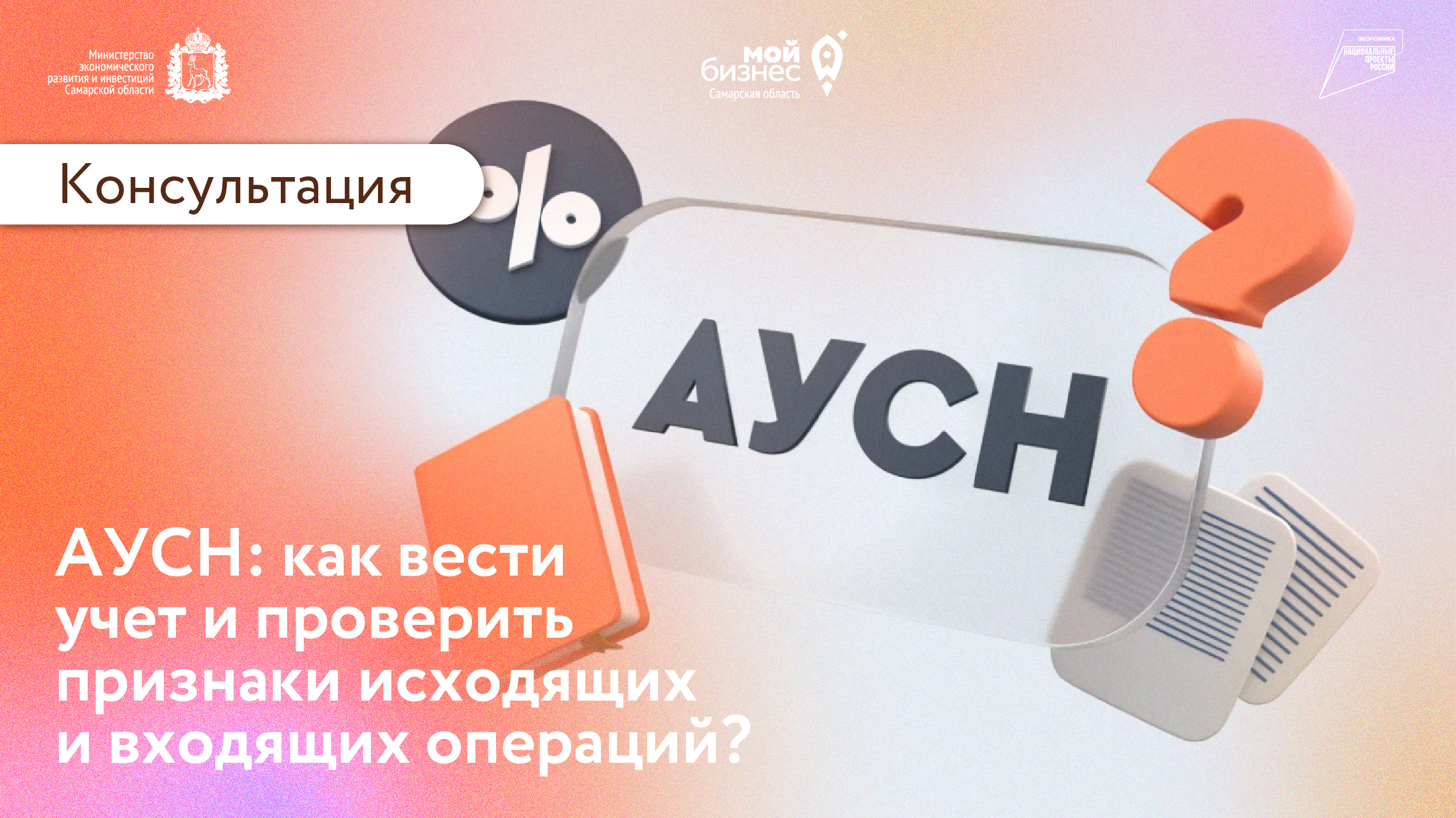Еженедельно, каждую пятницу в 13:00, в региональном центре «Мой бизнес» проводим консультацию «АУСН: как вести учет и проверить признаки исходящих и входящих операций?», где разберем налоговый учет, документооборот и взаимодействие с уполномоченным банком.